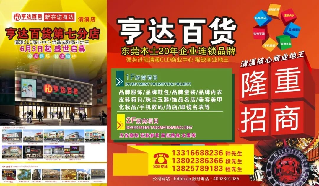 亨达百货清溪店即将开业! 精推珍藏黄金铺位! 现已开启…